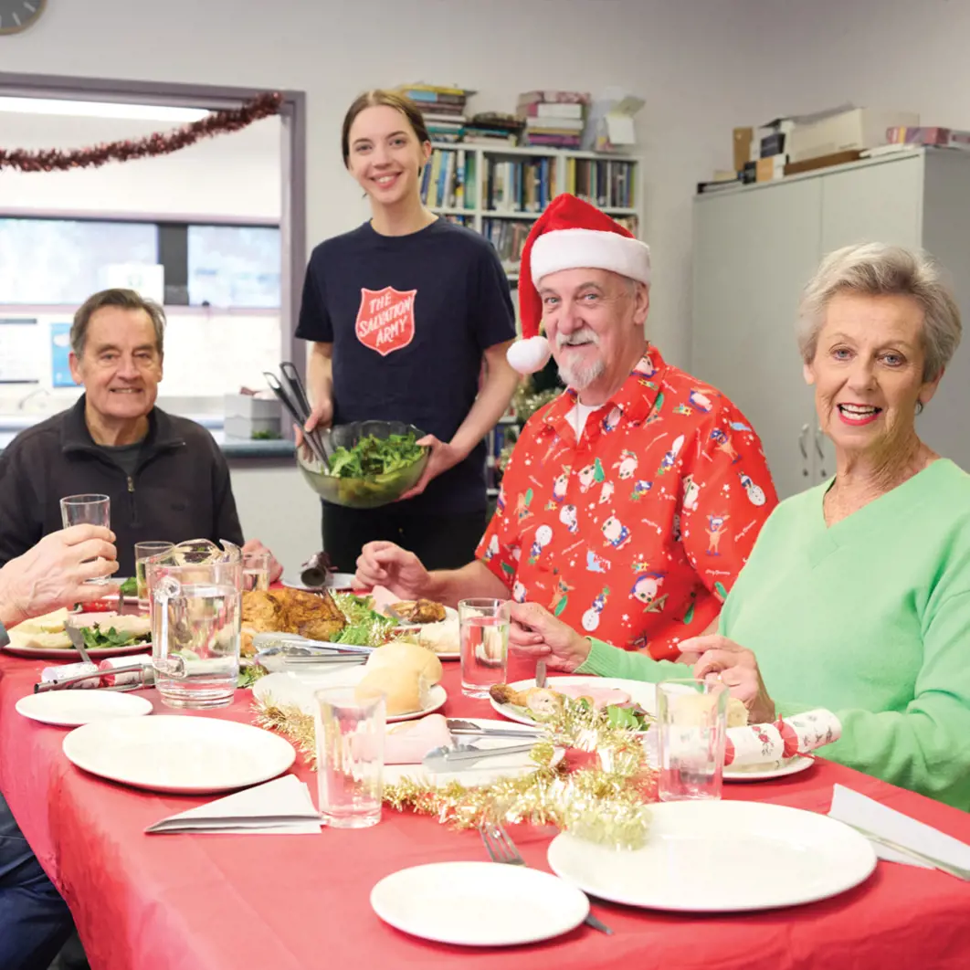 10 shared lunches for 10 isolated people. Times are so tough right now that many people are facing Christmas Day without Christmas lunch. But with this Christmas gift, you can bring 10 people struggling with hardship and isolation together for a delicious shared Christmas lunch around a festive Salvation Army table